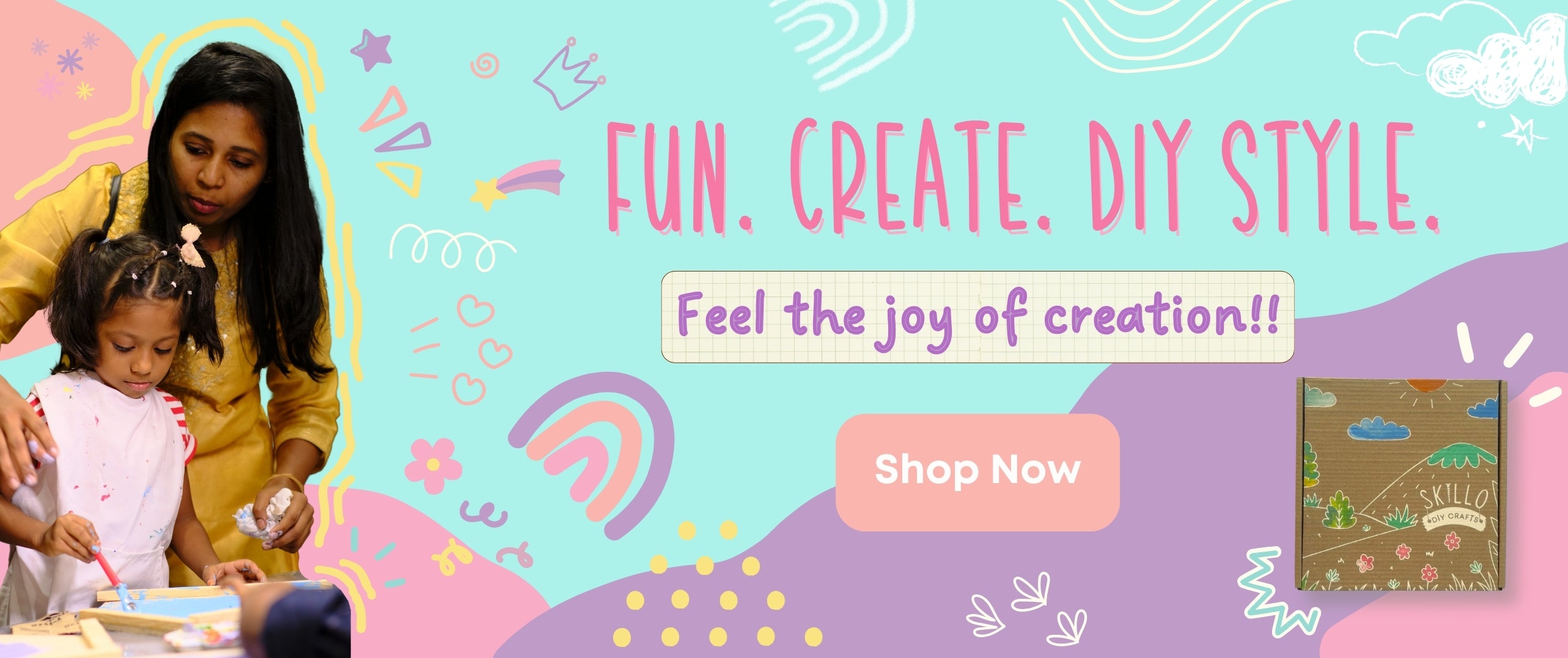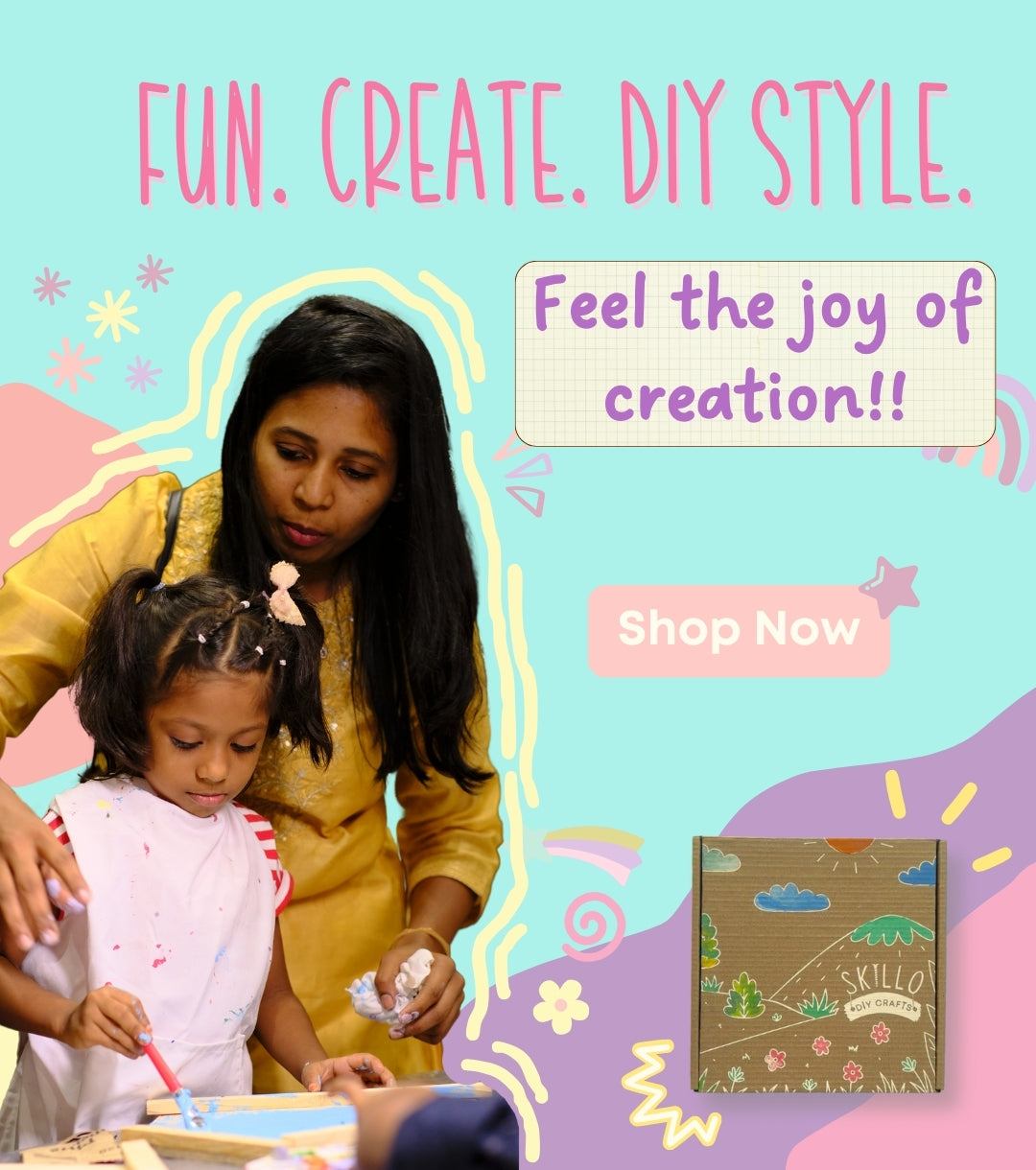 Skillo DIY Crafts was started to make craft forms accessible to both adults and children. It was born out of an idea to enable lifelong learning and make people fall in love with learning something new. We believe in people exploring new experiences with their own hands and building products.