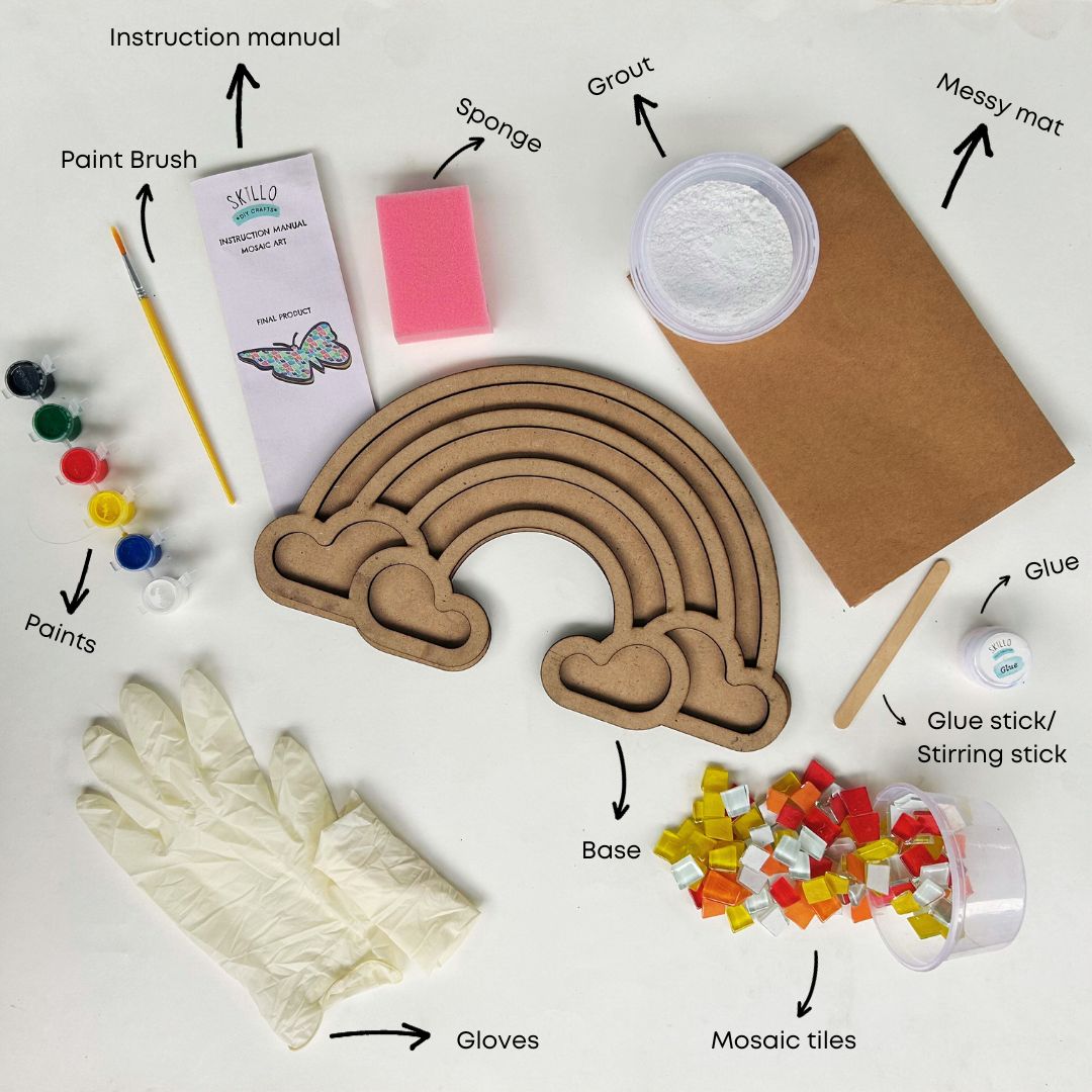 Discover the pure joy of crafting your very own Rainbow while gaining hands-on experience in mosaic art with our DIY Kit. Whether to do it with your family and friends or a thoughtful gift, this kit is sure to bring a touch of homemade charm to your decor.